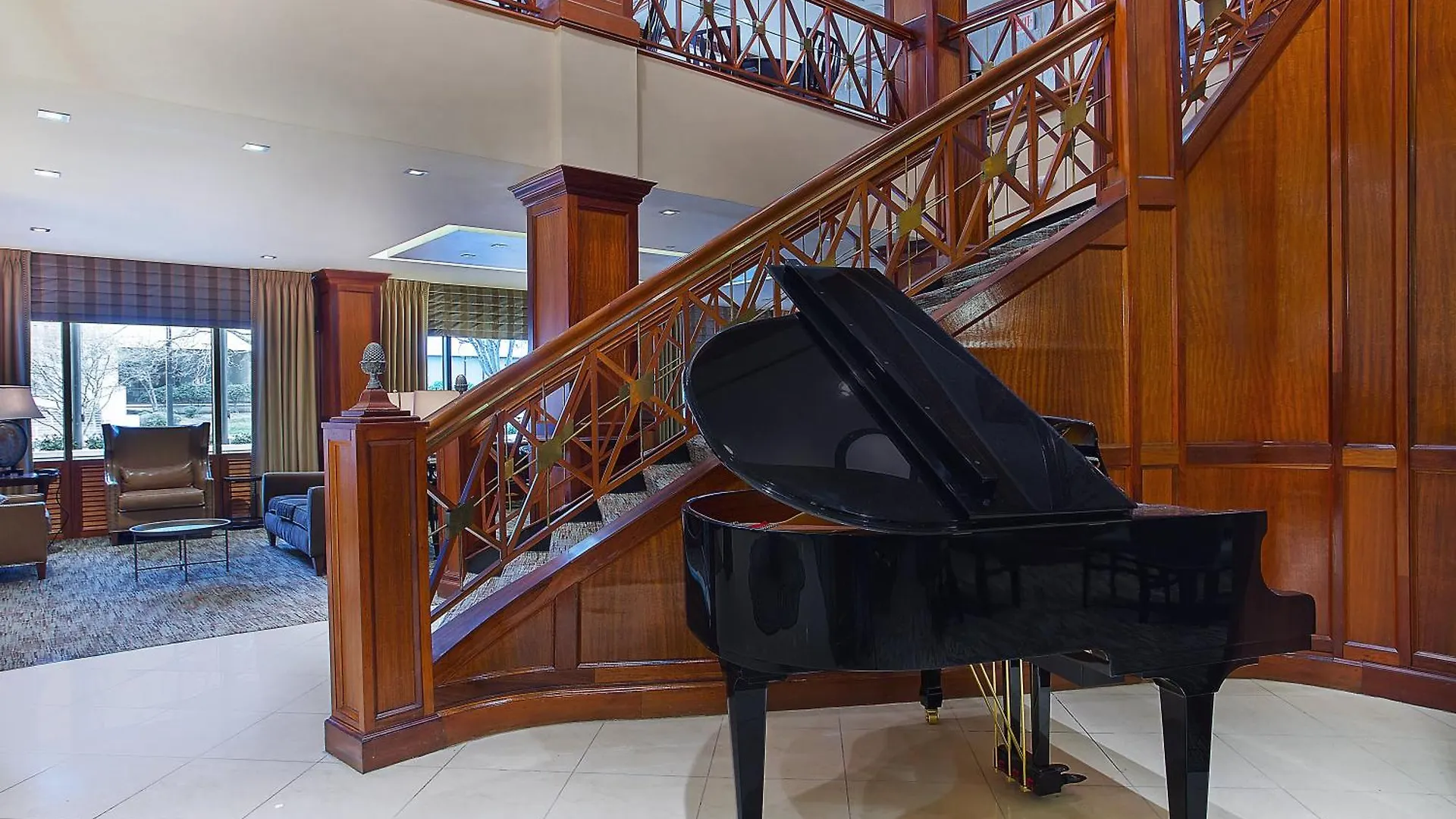 The deluxe hotel is set near corporate offices.